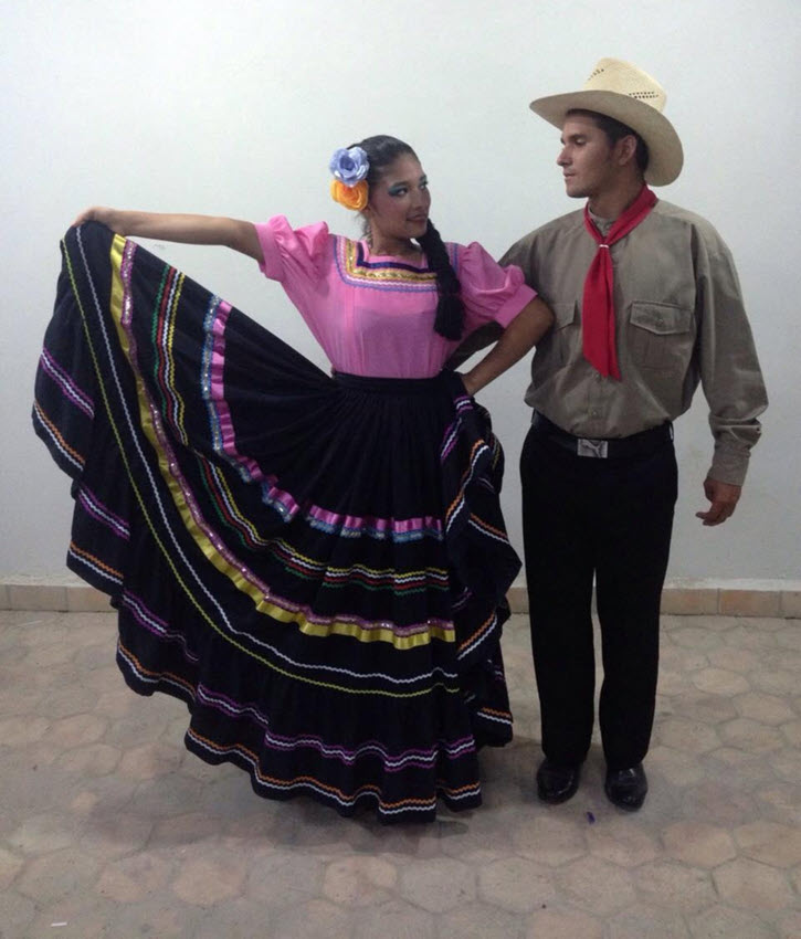 Aunque el vestido referencia es de una sola pieza, se decidió hacerlo en dos piezas por motivos de practicidad al momento de confeccionarlo para las bailarinas.