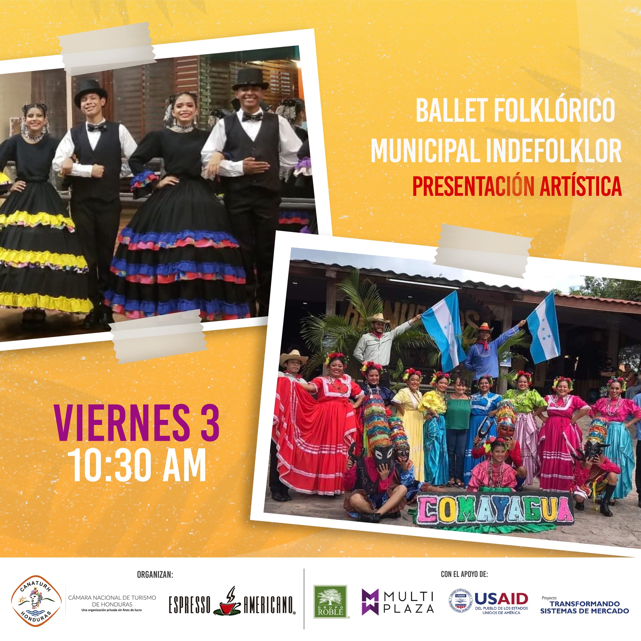 El viernes 3 de febrero, a las 10:30 a.m. nos estará acompañando el Ballet Folklórico Municipal INDEFOLKLOR de Comayagua, ven a disfrutar de su magnifico espectáculo dando realce al arte y cultura de Honduras.