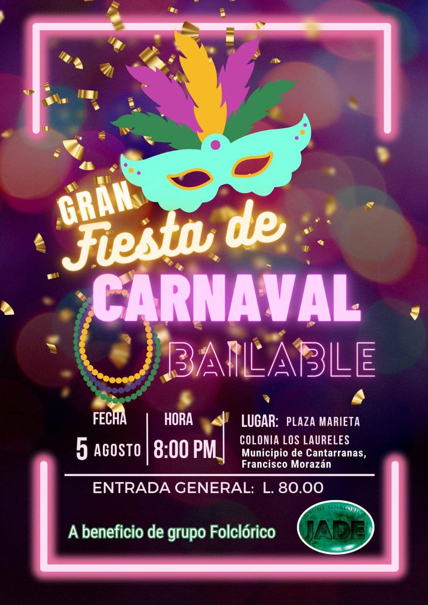 Acompáñanos en una gran fiesta de carnaval en Cantarranas, La Ciudad de Los Murales, para apoyar al Grupo Folclórico JADE. ¡¡Su presencia y cada contribución, grande o pequeña, serán significativas y apreciadas!!