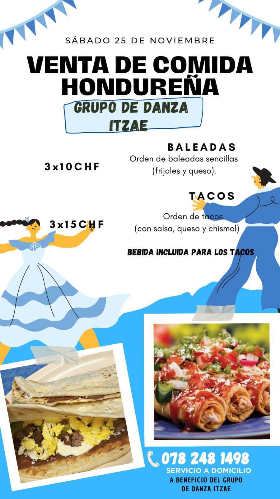 Hola paisanos! Este 25 de noviembre tendremos una actividad de deliciosas baleadas y tacos. No te quedes con las ganas y encarga tu orden