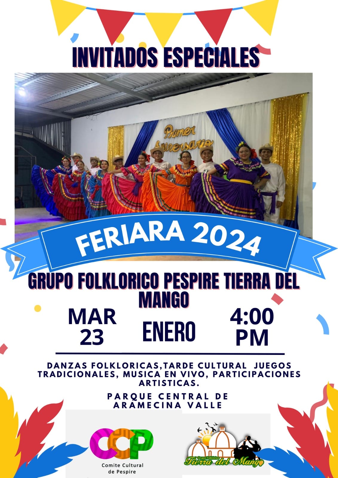 Danzas Folkloricas, tarde cultural, Juegos Tradicionales, Musica en Vivo, Participaciones Artisticas en La Tierra del Mango
