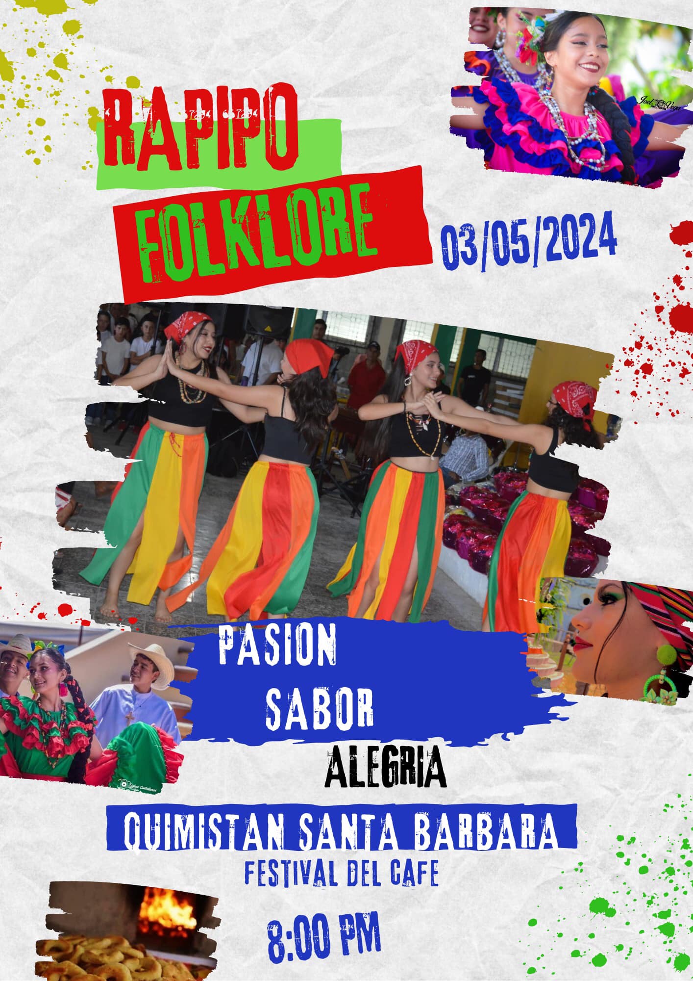 Presentación el RAPIPO Folklore en el Festival de Cafe, Centro Comercial Paseo del Valle, en Quimistan a las 8:00 PM.