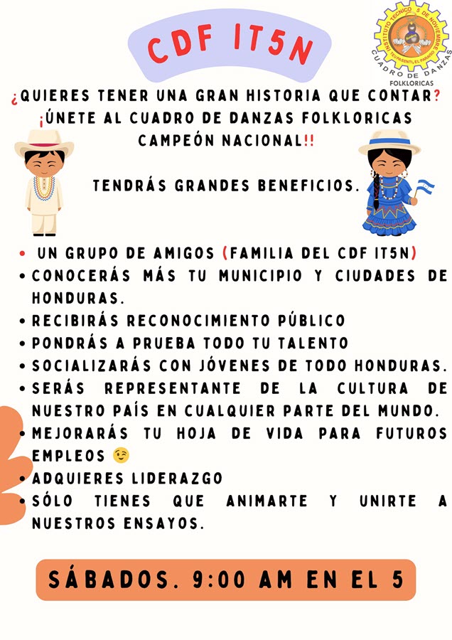 Ven y formar parte de nuestro grupo Cuadro de Danzas Folklóricas IT5N.