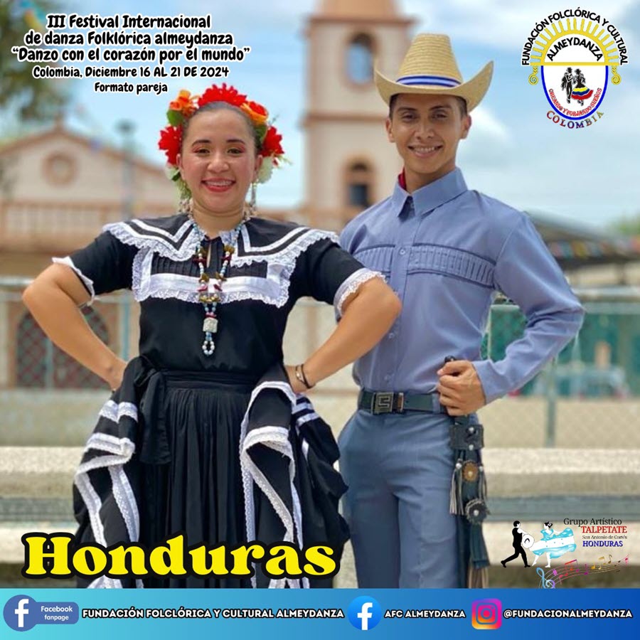 ¡Emociónate una vez más con nosotros! la junta directiva de nuestra fundación este 05 de Junio ha seleccionado la décimo Tercer (13) pareja Internacional para nuestro III Festival Internacional de Danza Folklórica Almeydanza "Danzo con el corazón por el mundo". ¡Felicidades a la pareja del "Grupo Artístico TALPETATE de San Antonio de Cortés, país HONDURAS, conformada por Jaime Joel Izaguirre Garcia y Jennyfer Xiomara Moreno Medina, bajo la dirección del maestro Dixie Ballesteros Mencia! ¡Estén atentos para más actualizaciones!