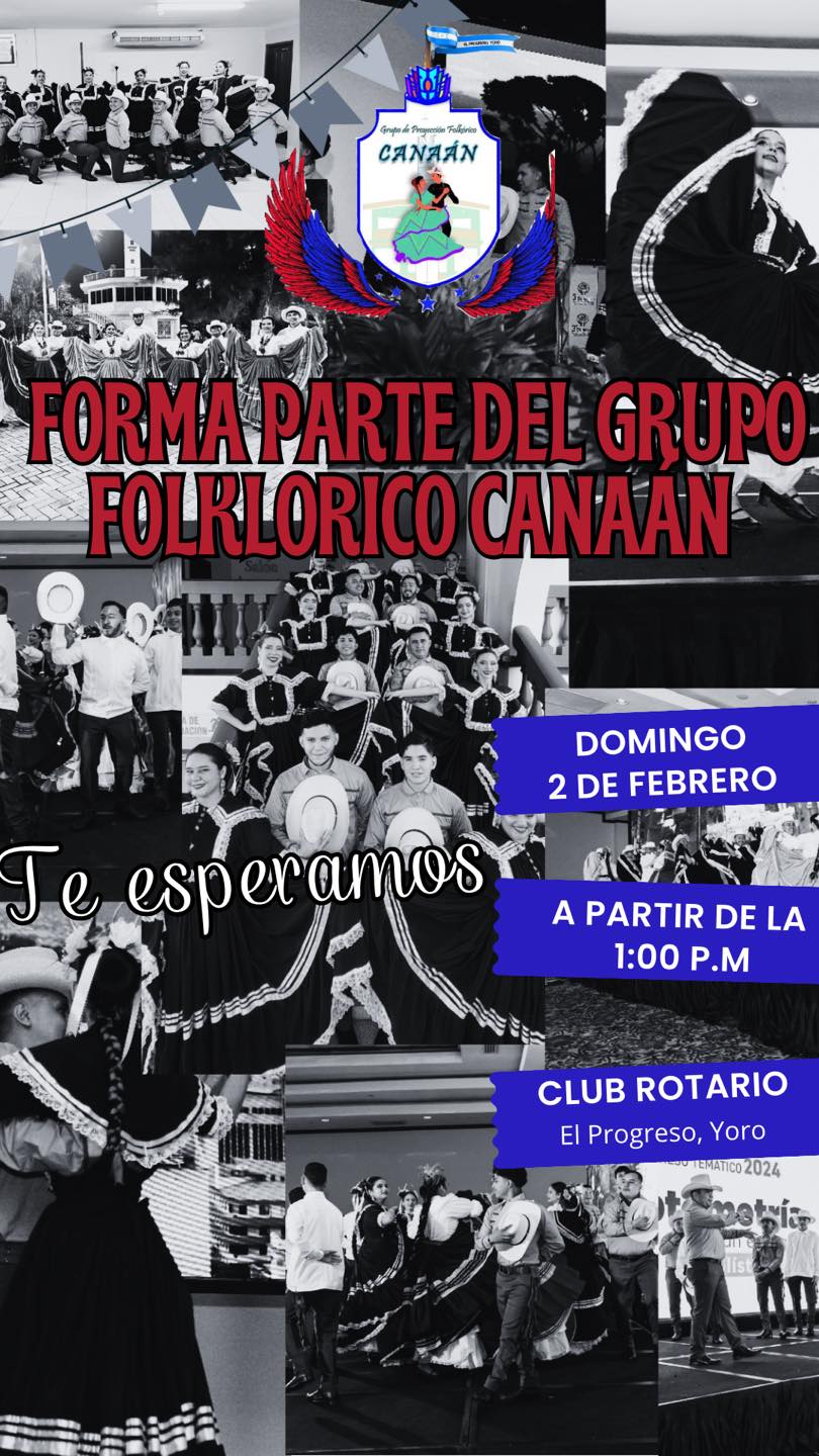 Si estás interesado en unirte a nuestra familia Folklorica, no dudes en escribirnos directamente por nuestra página en Facebook. ¡Te esperamos este domingo 2 de febrero a la 1:00 PM, en el Club Rotario El Progreso, Yoro para el primer ensayo general!