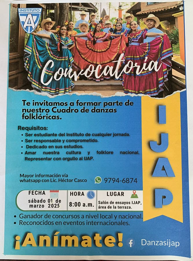 Te invitamos estudiantes del IJAP a formar parte de nuestra Cuadro de danzas folklóicas.