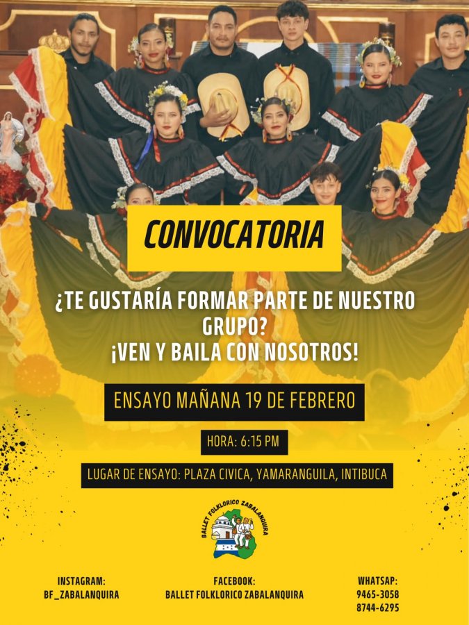 Convocatoria abierta—Ballet Folklórico Zabalanquira en Yamaranguila
