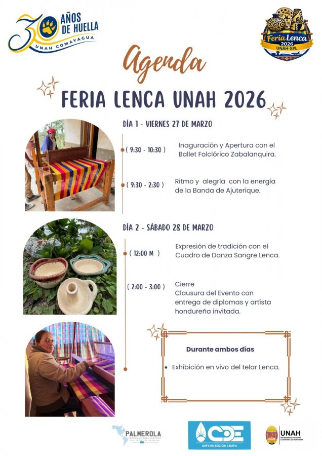 Porque no basta con decirte que mañana es el día, también queremos que llegues preparado y con el corazón abierto. La Feria Lenca UNAH 2026 no es solo un evento, es el resultado de meses de trabajo, de manos que tejieron, crearon y pusieron en cada pieza lo mejor de su pueblo. Mañana todo ese esfuerzo tiene un escenario y tú eres parte de él. Esto es lo que te espera.